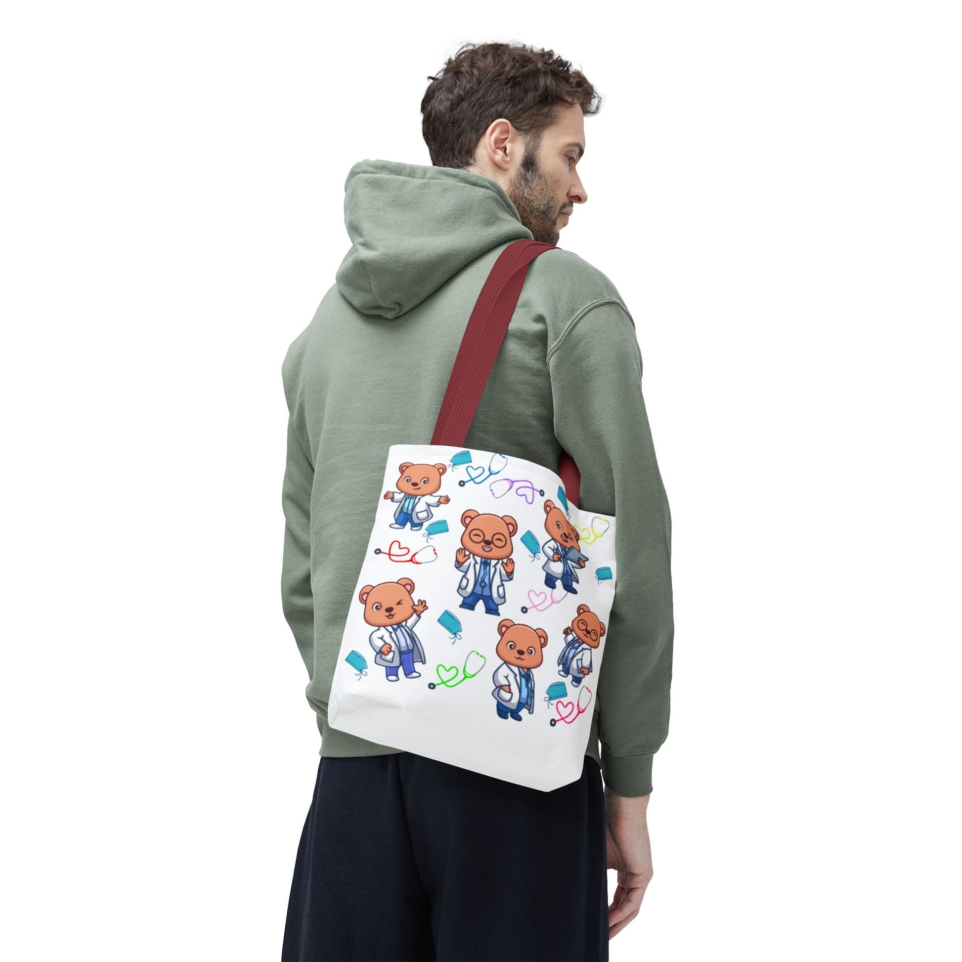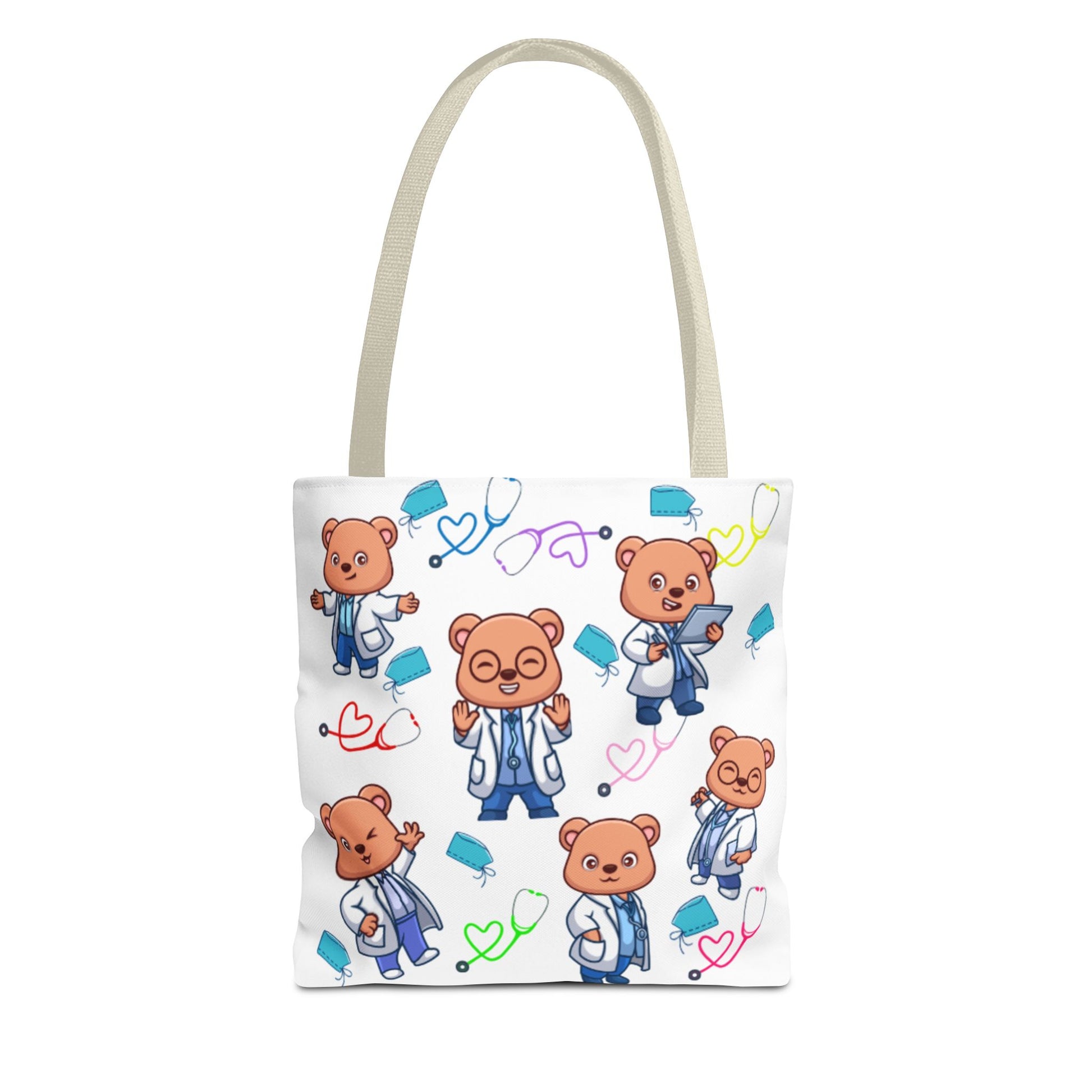 Introducing our vibrant and playful Tote Bag, perfect for those who love to stand out while staying organized. With adorable bear designs dressed as doctors, this tote radiates a cheerful vibe that brightens up any outing. Made from durable, 100% polyester, it’s ready to carry your essentials whether you’re heading to the beach, grocery shopping, or a casual meet-up with friends. Its spacious interior and stylish appearance make it a fabulous choice for healthcare professionals, students, or anyone who appreciates a touch of whimsy in their daily life. Ideal for gifting during celebrations like Nurse Appreciation Week, graduations, or even just as a thoughtful treat for yourself. Bring joy and practicality together with this charming bag!